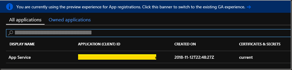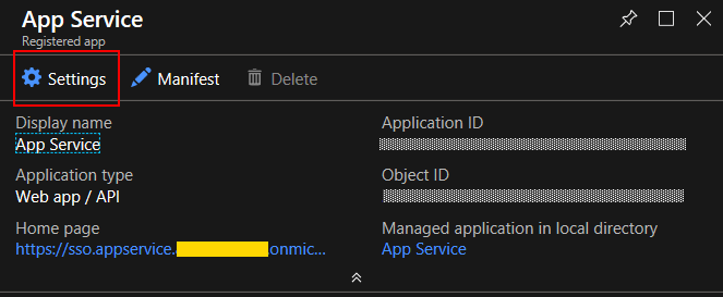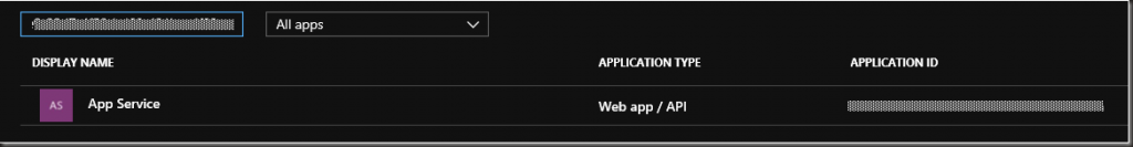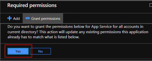 Now we need to grant the application permissions for the App Service application to the accounts in Active Directory.