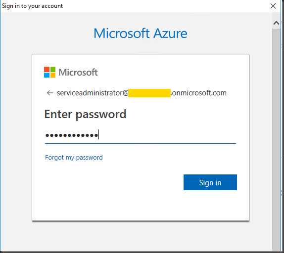 You’ll get prompted to authenticate to the directory tenant. Provide the details of a user with access to create Applications in the directory.
