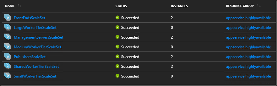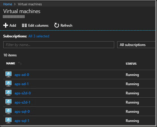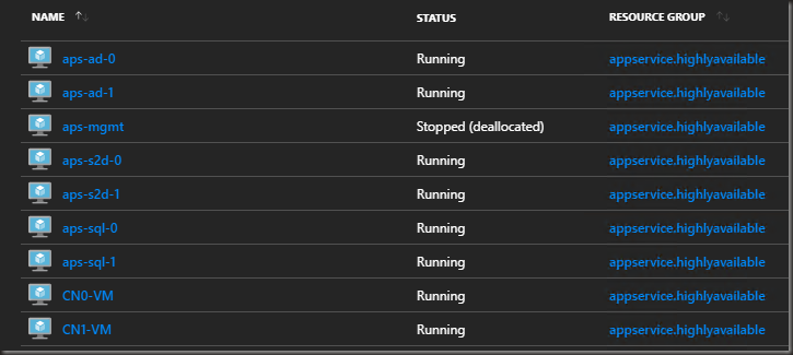 Virtual Machines deployed (you won’t see aps-mgmt as I deployed this to do some post deploy config & testing)