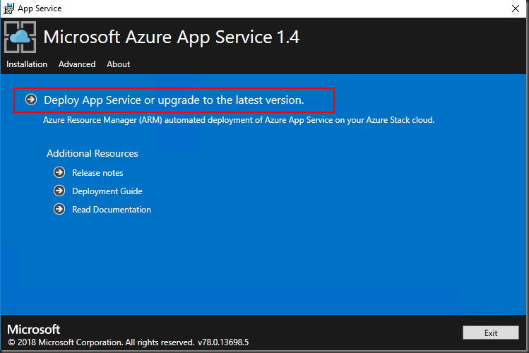 4. Run the App Service 1.4 installer