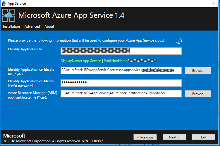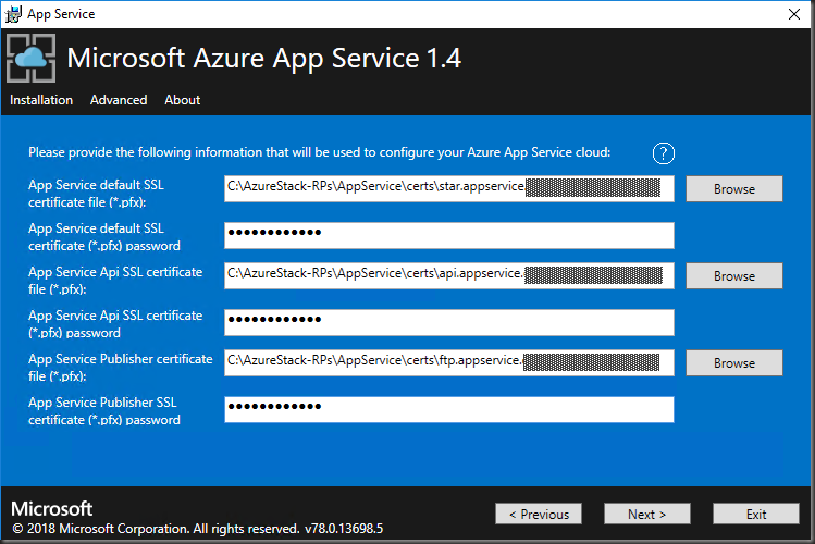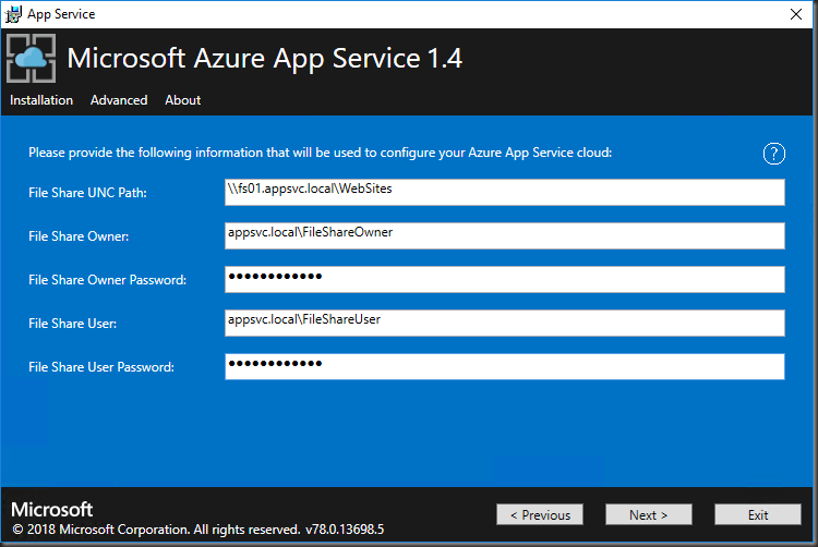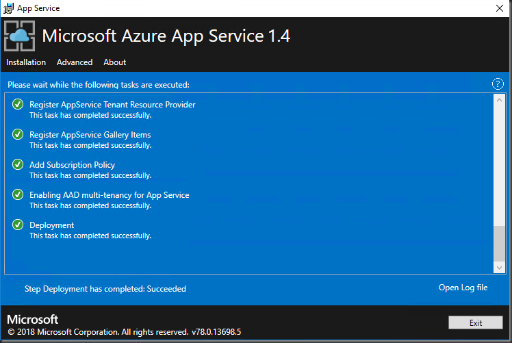 - Run the App Service 1.4 installer