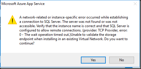 Expect a similar error as the file share due to the installer being unable to validate the SQL details![]()