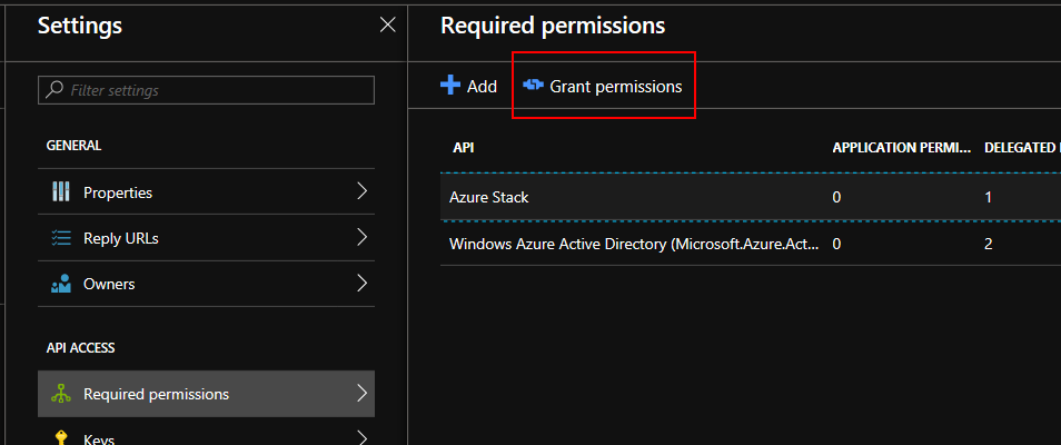 Select Required permissions and select Azure Stack