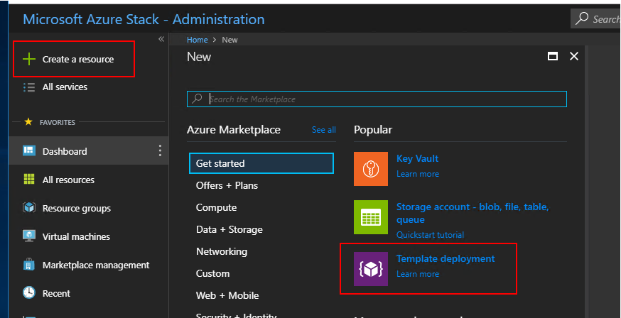 Create a resource > Template deployment