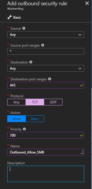 Last part of the deployment process requires the Web Worker NSG to be updated to allow the Workers to connect to our file server via SMB