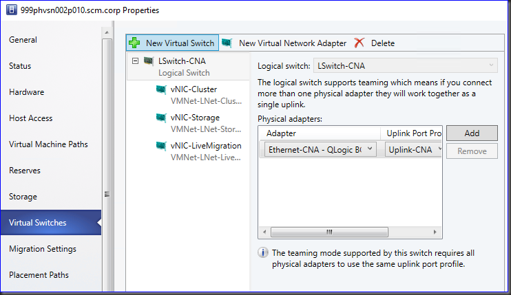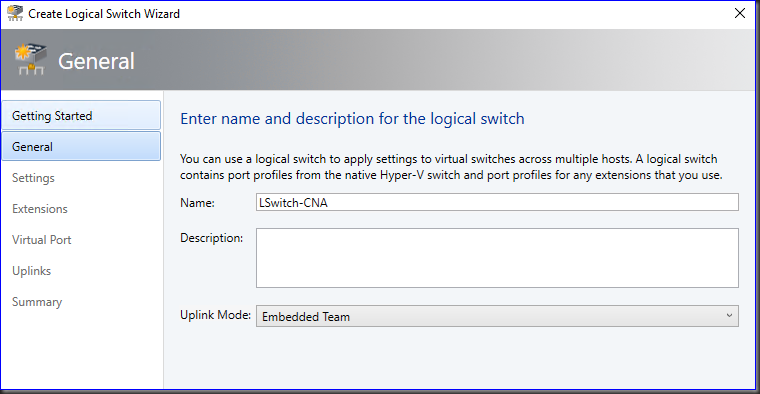 tip: Think of a Logical Switch in SCVMM as a vSwitch and/or Converged Network Adapter template