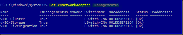 And last take a look using Get-VMNetworkAdapter –ManagementOS