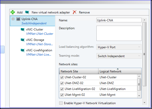 Add an existing Hyper-V Port Profile and build you vNICs.