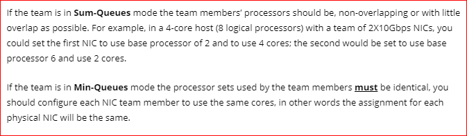 Min-queue mode: All NICs in the team/switch must have identical processor assignments