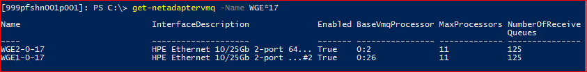 Set-NetAdapterVMQ -Name WGE1-0-17 -BaseProcessorNumber 26 -MaxProcessors 11