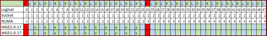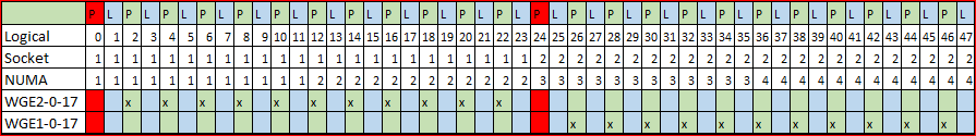 For WGE2-0-17, find the first ‘x’. This is out -BaseProcessorNumber. Now could the number of ‘x’ and this is your -MaxProcessors value.
