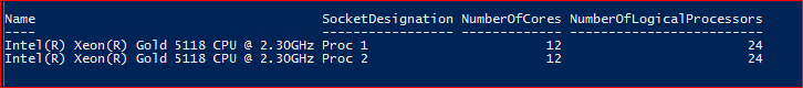 Get-WmiObject -Class Win32_Processor | select Name,SocketDesignation,NumberOfCores,NumberOfLogicalProcessors