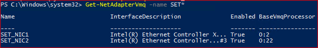 Set-NetAdapterVMQ -Name WGE2-0-17 -BaseProcessorNumber 2 -MaxProcessors 8