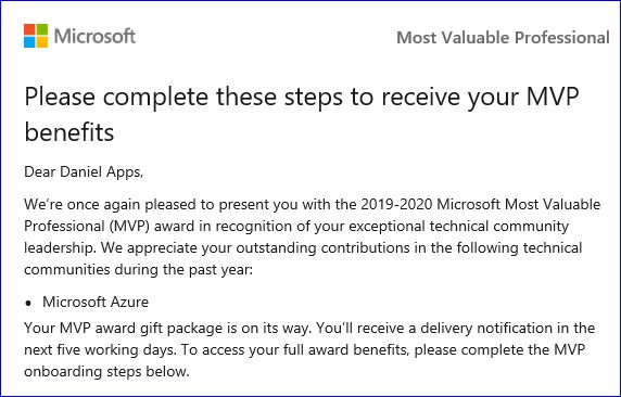Last week I received the exciting news that I had been recognized as a Microsoft MVP for another year.
